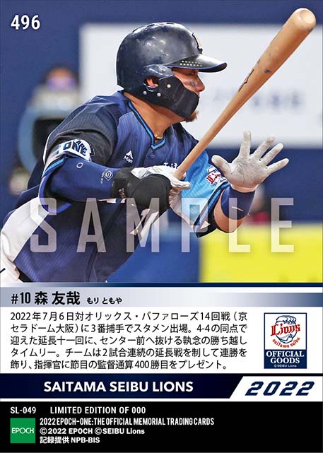 公式【森 友哉】延長十一回 値千金勝ち越しタイムリー(22.7.6) のカードを買うならエポックワン!税込・送料無料!