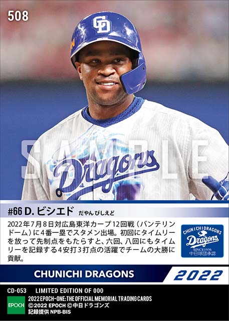公式【ビシエド】先制打含む3タイムリー(22.7.8) のカードを買うならエポックワン!税込・送料無料!