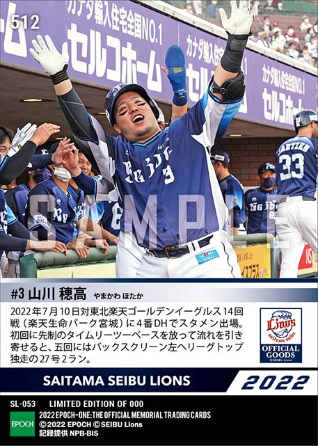 公式【山川穂高】先制タイムリー&27号2ラン(22.7.10) のカードを買うならエポックワン!税込・送料無料!
