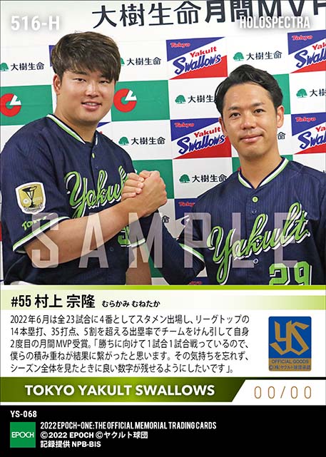 公式※ホロスペクトラ【村上宗隆】2022年度 大樹生命月間MVP賞 セントラル・リーグ6月度打者部門(22.7.8) のカードを買うならエポックワン!税込・送料無料!