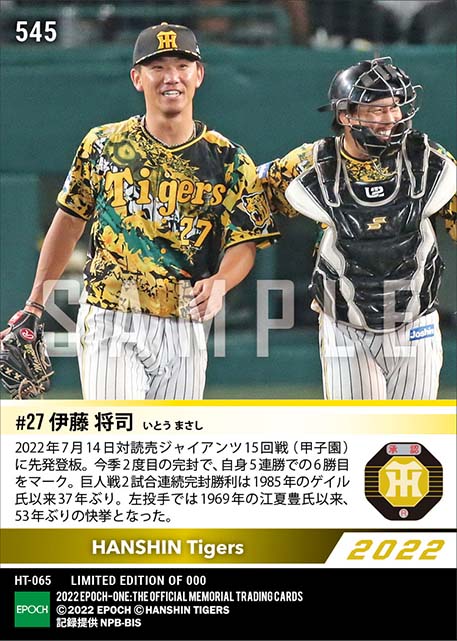 公式【伊藤将司】球団37年ぶりとなる巨人戦2試合連続完封勝利(22.7.14) のカードを買うならエポックワン!税込・送料無料!