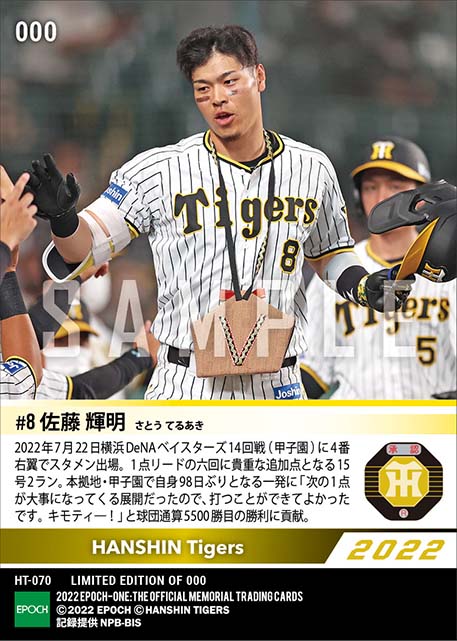 公式【佐藤輝明】球団通算5500勝目に貢献する15号2ラン(22.7.22) のカードを買うならエポックワン!税込・送料無料!