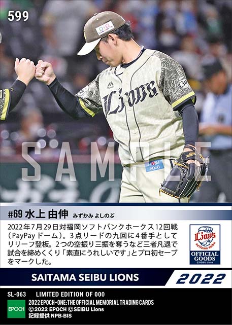 公式【水上由伸】プロ初セーブ(22.7.29) のカードを買うならエポックワン!税込・送料無料!