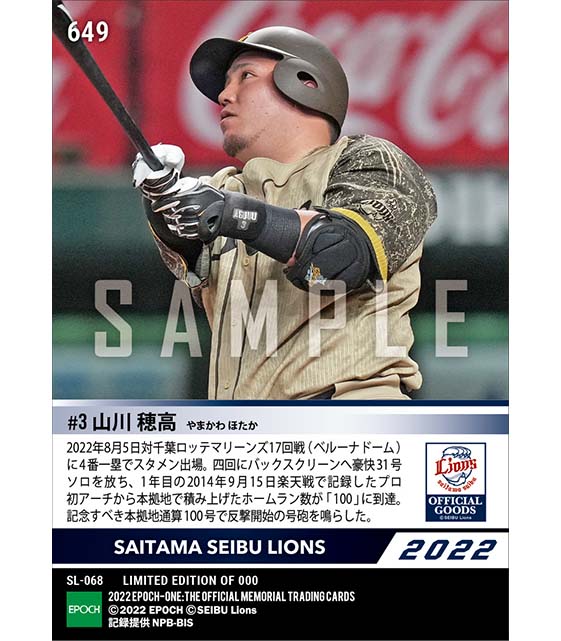 公式【山川穂高】本拠地通算100本塁打達成「ライオンズフェスティバルズ2022」(22.8.5) のカードを買うならエポックワン!税込・送料無料!