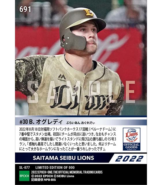 公式【オグレディ】初回決勝15号3ラン「ライオンズフェスティバルズ2022」(22.8.18) のカードを買うならエポックワン!税込・送料無料!