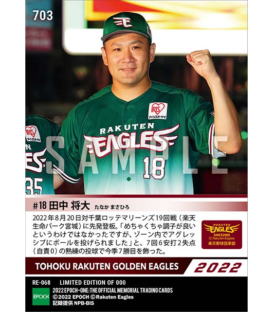 公式【田中将大】アグレッシブな投球で今季7勝目(22.8.20) のカードを買うならエポックワン!税込・送料無料!