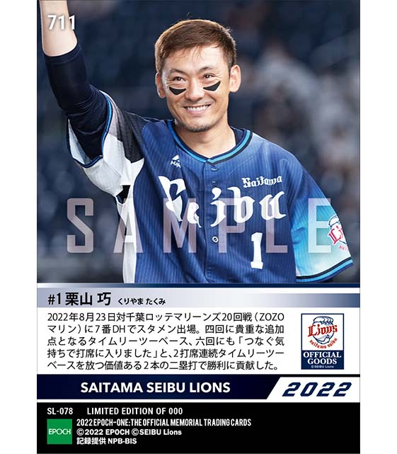 公式【栗山 巧】2打席連続タイムリーツーベース(22.8.23) のカードを買うならエポックワン!税込・送料無料!