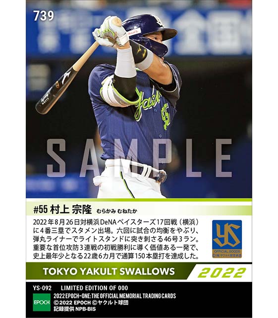公式【村上宗隆】史上最年少での通算150本塁打達成(22.8.26) のカードを買うならエポックワン!税込・送料無料!
