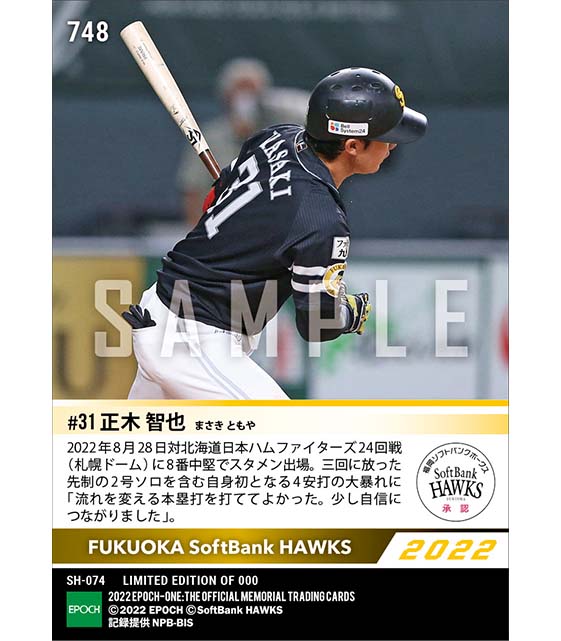 公式RC【正木智也】先制ソロ含むプロ初4安打(22.8.28) のカードを買うならエポックワン!税込・送料無料!