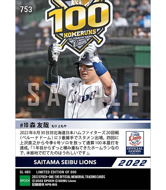 公式【森 友哉】通算100本塁打達成(22.8.30) のカードを買うならエポックワン!税込・送料無料!