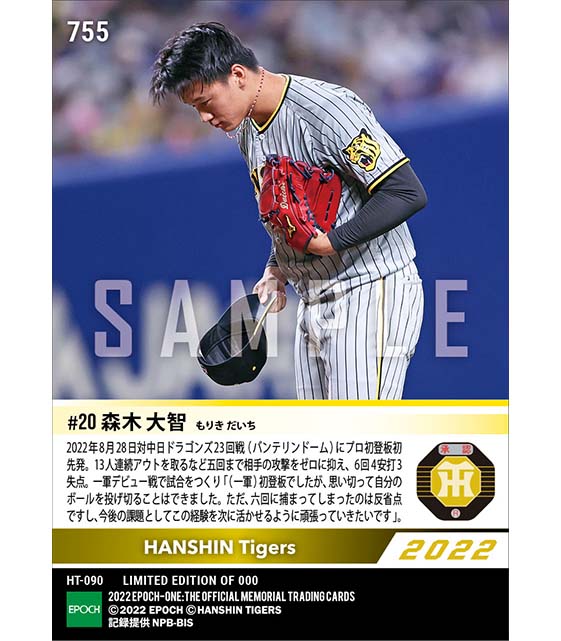 公式RC【森木大智】プロ初先発初登板(22.8.28) のカードを買うならエポックワン!税込・送料無料!