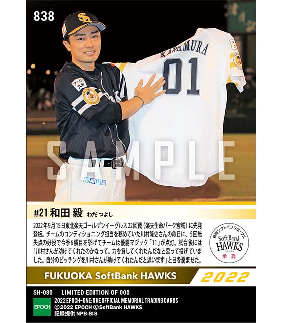 公式【和田 毅】今季6勝目でチームは優勝マジック初点灯(22.9.15) のカードを買うならエポックワン!税込・送料無料!