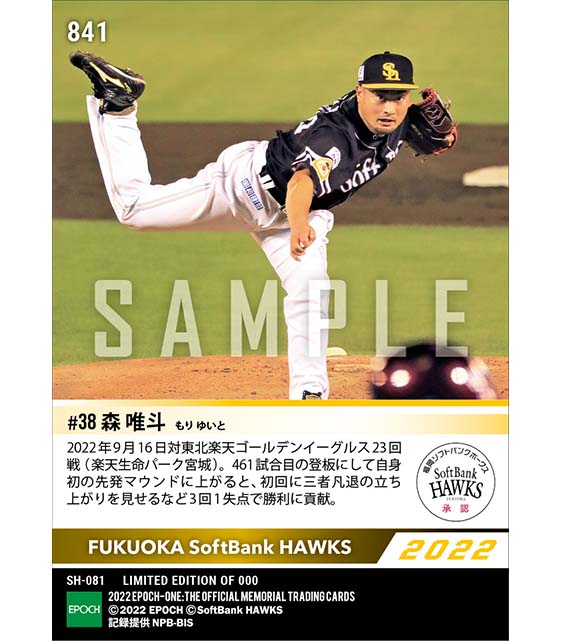 公式【森 唯斗】461試合目のプロ初先発(22.9.16) のカードを買うならエポックワン!税込・送料無料!