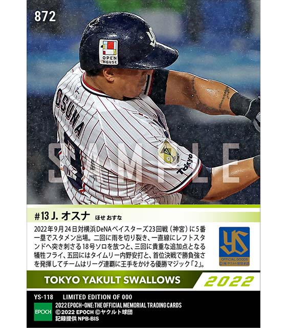 公式【オスナ】18号ソロ含む3打点で優勝マジック「2」(22.9.24) のカードを買うならエポックワン!税込・送料無料!