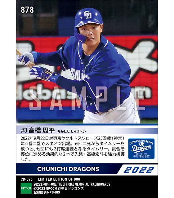 公式【高橋周平】2打席連続タイムリー(22.9.22) のカードを買うならエポックワン!税込・送料無料!