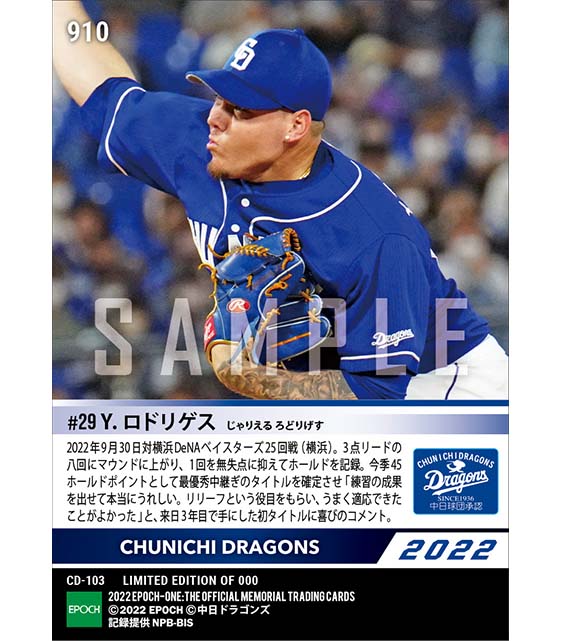 公式【ロドリゲス】今季45HPで最優秀中継ぎのタイトル確定(22.9.30) のカードを買うならエポックワン!税込・送料無料!