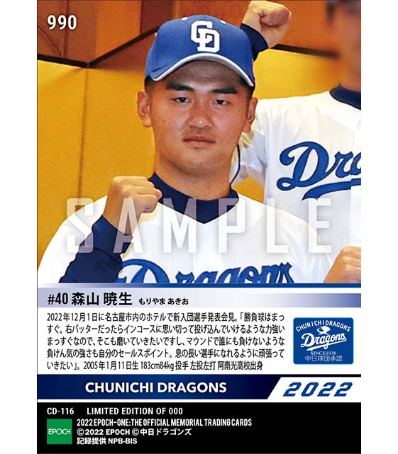 公式RC【森山暁生】新入団発表(ドラフト3巡目)「息の長い選手になれるように」(22.12.1) のカードを買うならエポックワン!税込・送料無料!