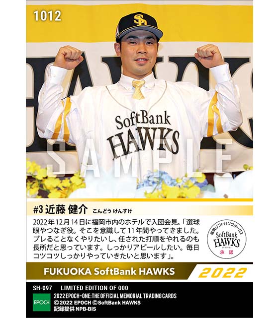 公式【近藤健介】入団会見「リーグ優勝や日本一を目指して」(22.12.14) のカードを買うならエポックワン!税込・送料無料!