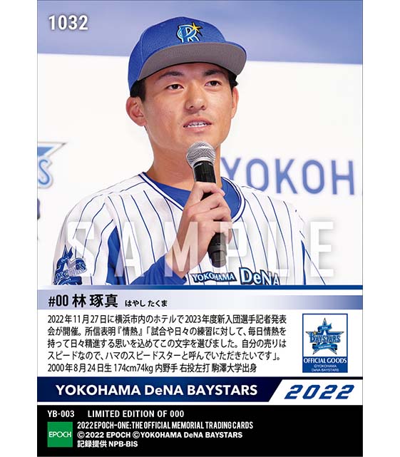 公式RC【林 琢真】新入団選手発表(ドラフト3巡目)「ハマのスピードスターと呼んでいただきたい」(22.11.27) のカードを買うならエポックワン!税込・送料無料!