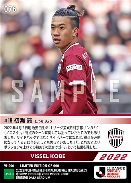 公式【初瀬亮】J初ゴール(22.4.2) のカードを買うならエポックワン!税込・送料無料!