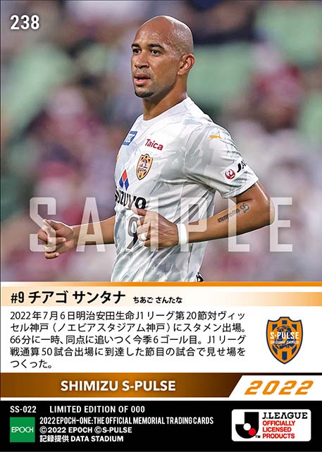 公式【チアゴ サンタナ】J1通算50試合出場(22.7.6) のカードを買うならエポックワン!税込・送料無料!