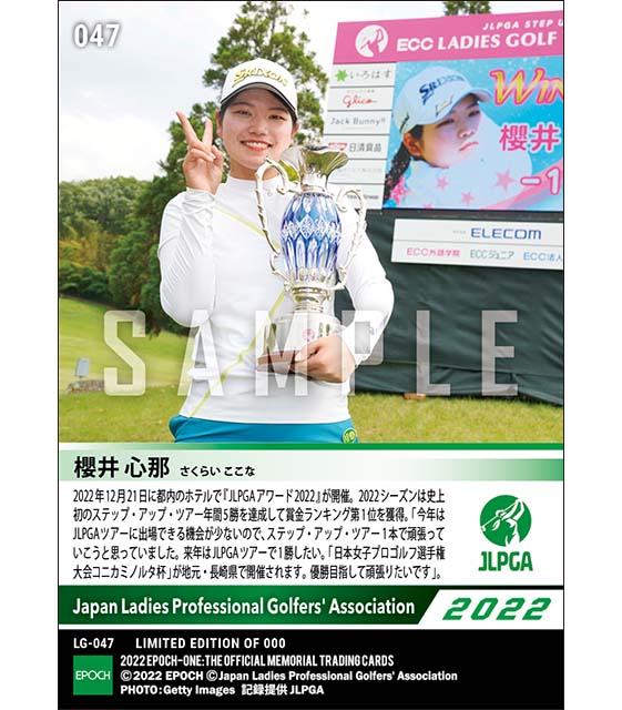 公式【櫻井心那】JLPGAアワード2022 JLPGAステップ・アップ・ツアー賞金ランキング第1位(22.12.21) のカードを買うならエポックワン!税込・送料無料!