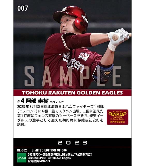 公式【阿部寿樹】移籍後初安打(23.3.30) のカードを買うならエポックワン!税込・送料無料!