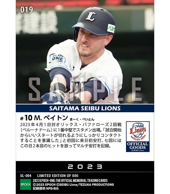公式【ペイトン】来日初安打含むマルチ安打(23.4.1) のカードを買うならエポックワン!税込・送料無料!