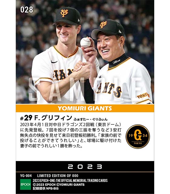 公式【グリフィン】来日初登板初勝利(23.4.1) のカードを買うならエポックワン!税込・送料無料!