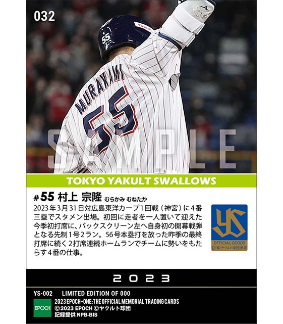 公式【村上宗隆】今季初打席に自身初の開幕戦弾(23.3.31) のカードを買うならエポックワン!税込・送料無料!