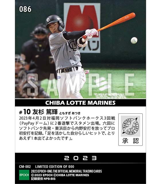 公式RC【友杉篤輝】プロ初スタメン初安打(23.4.2) のカードを買うならエポックワン!税込・送料無料!