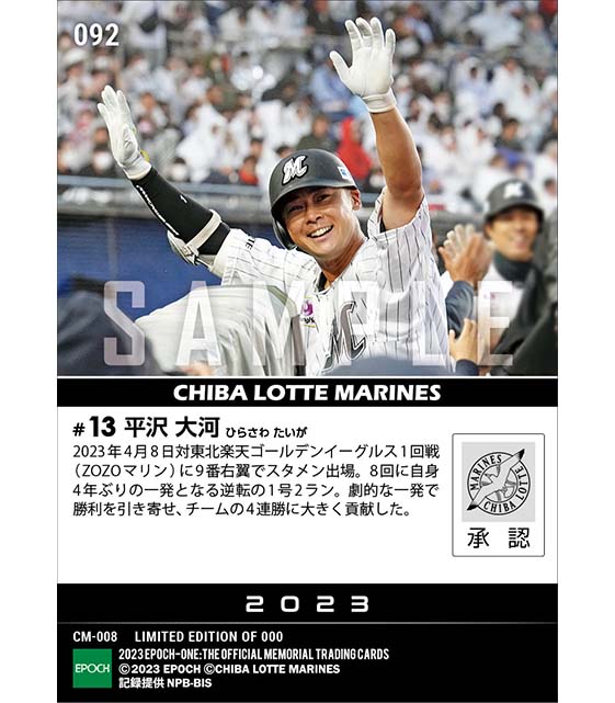公式【平沢大河】自身4年ぶりの一発となる逆転決勝弾(23.4.8) のカードを買うならエポックワン!税込・送料無料!
