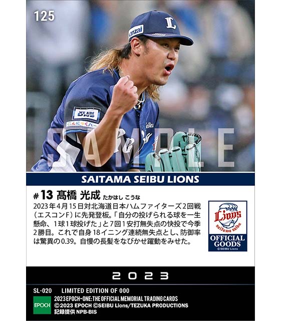 公式【髙橋光成】7回1安打無失点の好投で今季2勝目(23.4.15) のカードを買うならエポックワン!税込・送料無料!