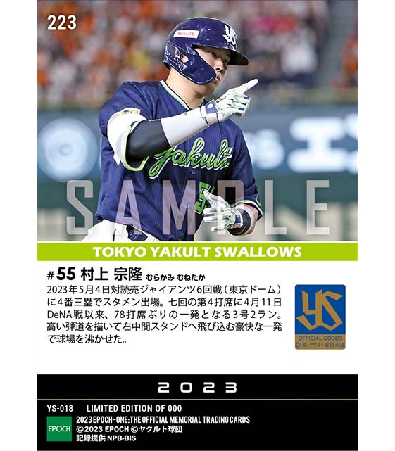 公式【村上宗隆】78打席ぶりの一発となる3号2ラン(23.5.4) のカードを買うならエポックワン!税込・送料無料!