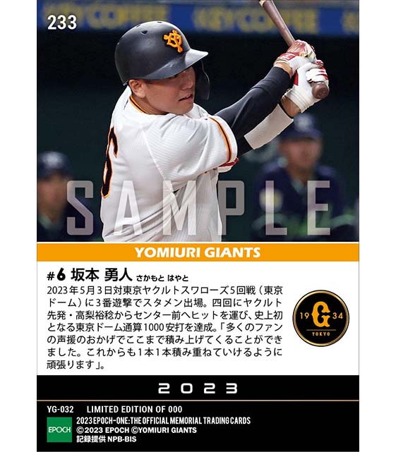 公式【坂本勇人】史上初東京ドーム通算1000安打達成(23.5.3) のカードを買うならエポックワン!税込・送料無料!