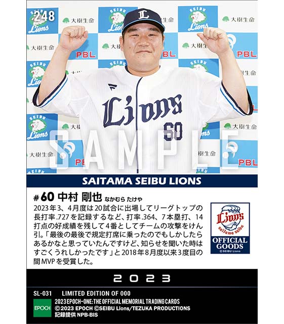 公式【中村剛也】2023年度 大樹生命月間MVP賞 パシフィック・リーグ3、4月度打者部門(23.5.11) のカードを買うならエポックワン!税込・送料無料!