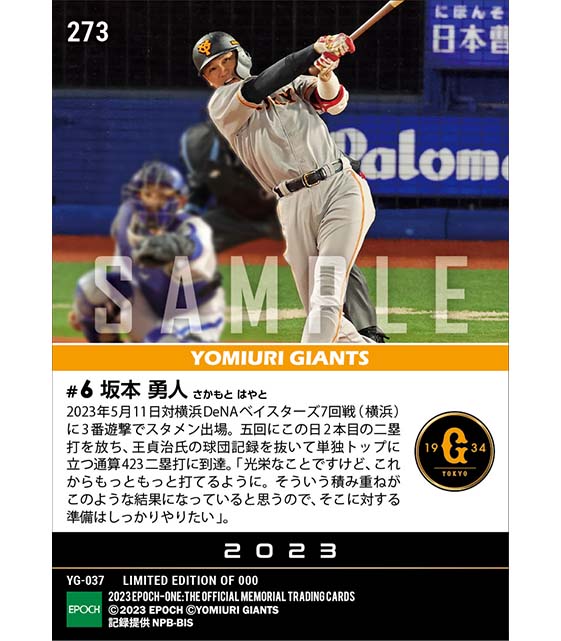 公式【坂本勇人】球団単独トップに立つ通算423二塁打(23.5.11) のカードを買うならエポックワン!税込・送料無料!