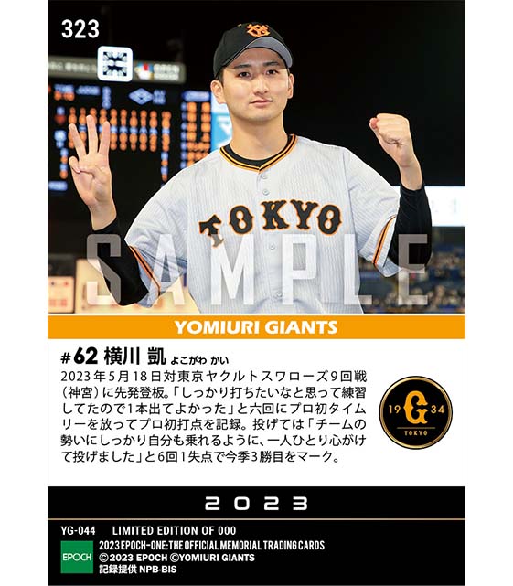公式【横川 凱】投打にわたる活躍で同一カード3連勝に貢献(3勝目&プロ初タイムリー初打点)(23.5.18) のカードを買うならエポックワン!税込・送料無料!