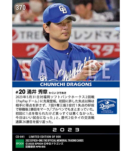 公式【涌井秀章】チームの順位を押し上げる今季2勝目(23.5.31) のカードを買うならエポックワン!税込・送料無料!