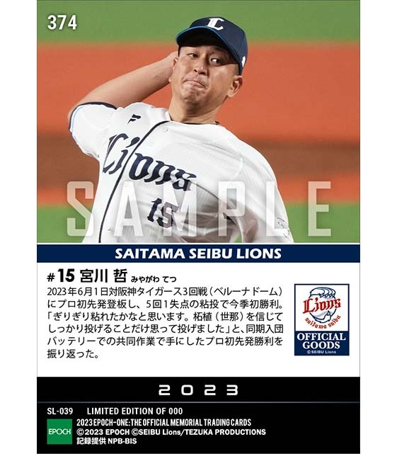 公式【宮川 哲】プロ初先発勝利(23.6.1) のカードを買うならエポックワン!税込・送料無料!