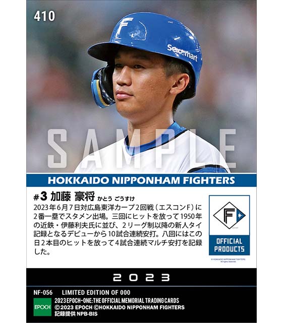 公式RC【加藤豪将】2リーグ制以降最多タイとなるデビューから10試合連続安打(23.6.7) のカードを買うならエポックワン!税込・送料無料!