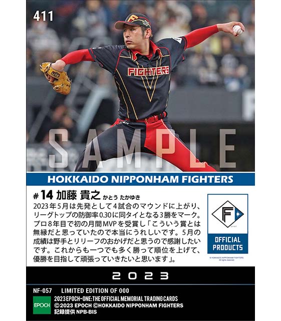 公式【加藤貴之】2023年度 大樹生命月間MVP賞 パシフィック・リーグ5月度投手部門(23.6.8) のカードを買うならエポックワン!税込・送料無料!