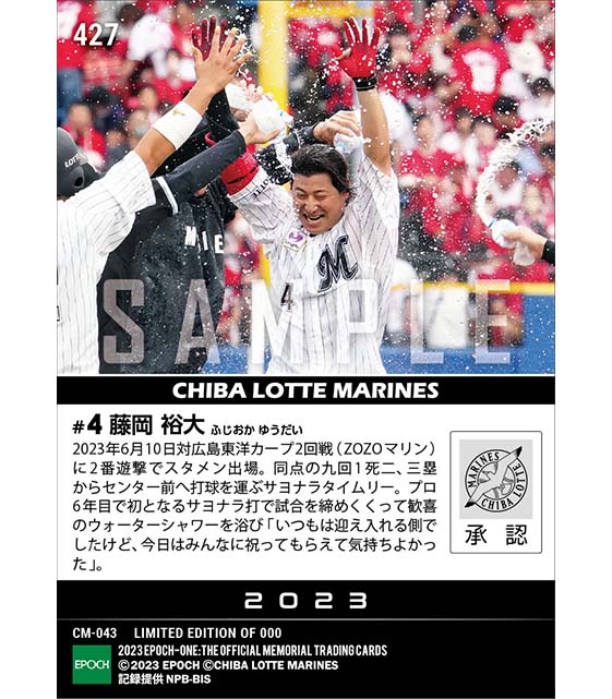公式【藤岡裕大】プロ初サヨナラ打(23.6.10) のカードを買うならエポックワン!税込・送料無料!