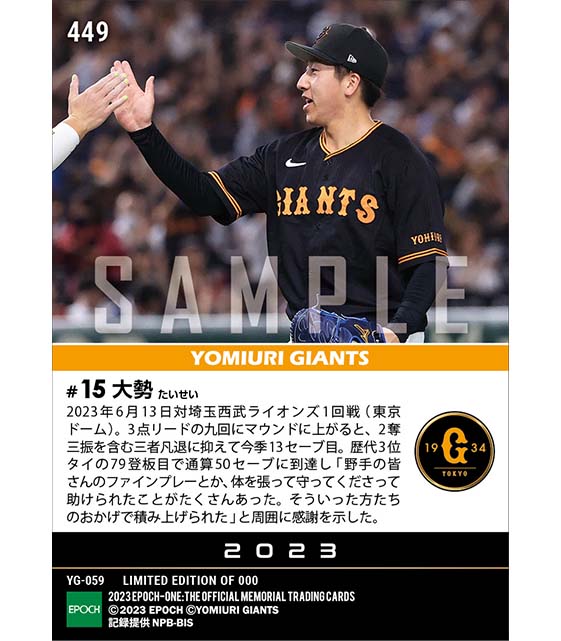 公式【大勢】3人斬りで通算50セーブ到達(23.6.13) のカードを買うならエポックワン!税込・送料無料!
