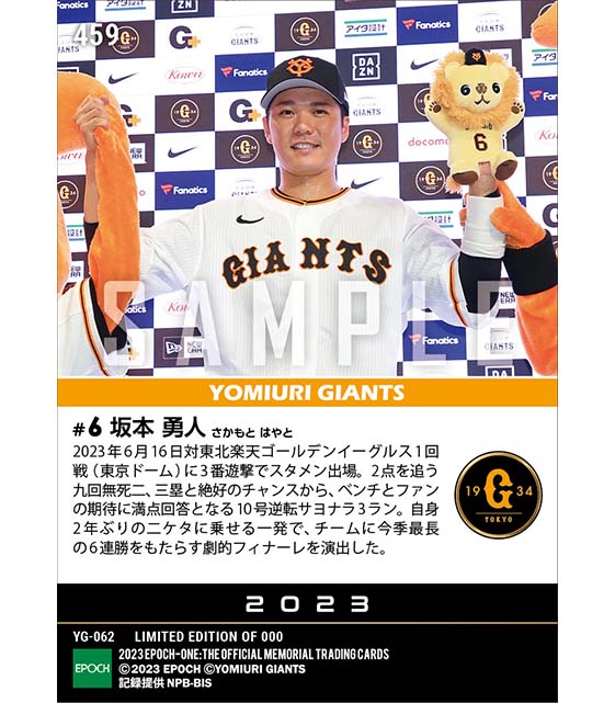 公式【坂本勇人】劇的逆転サヨナラ3ラン(23.6.16) のカードを買うならエポックワン!税込・送料無料!