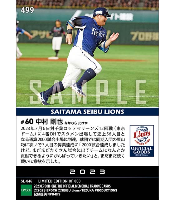 公式【中村剛也】通算2000試合出場達成(23.7.6) のカードを買うならエポックワン!税込・送料無料!