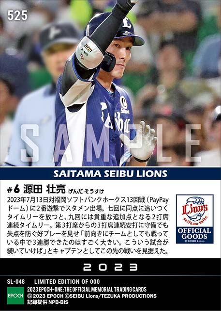 公式【源田壮亮】3連勝に導く2打席連続タイムリー(23.7.13) のカードを買うならエポックワン!税込・送料無料!