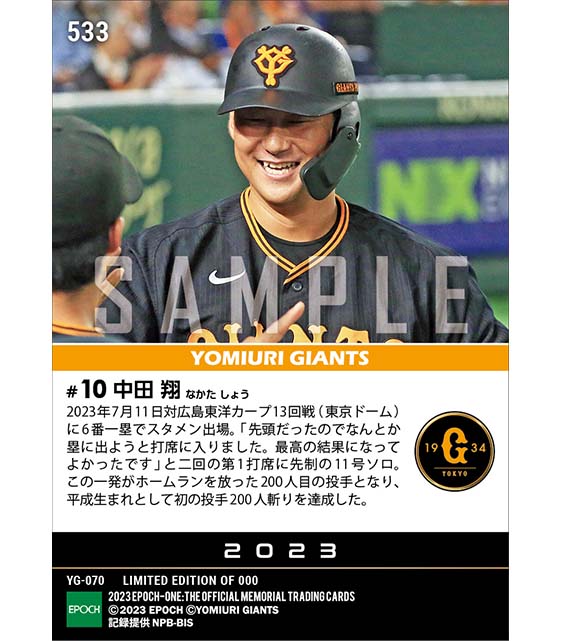 公式【中田 翔】平成生まれ初の200人斬り(23.7.11) のカードを買うならエポックワン!税込・送料無料!