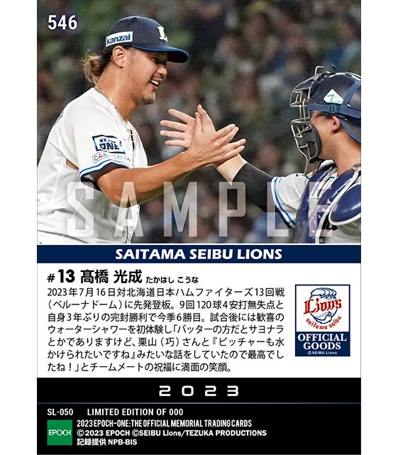 公式【髙橋光成】自身3年ぶりの完封勝利(23.7.16) のカードを買うならエポックワン!税込・送料無料!