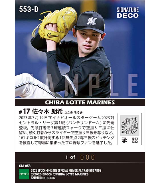 公式※Signature DECO【佐々木朗希】先発マウンドに上がってファンを魅了「マイナビオールスターゲーム2023」(23.7.19) のカードを買うならエポックワン!税込・送料無料!